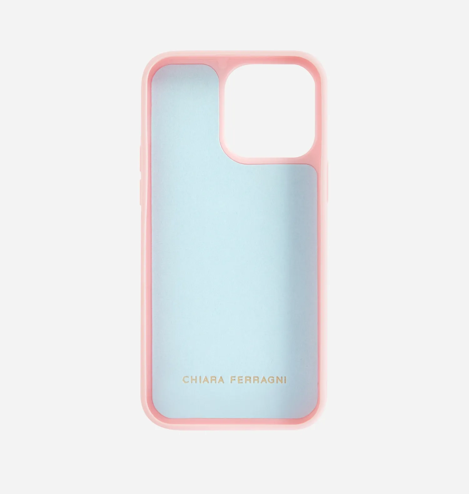 iPhone 14 PRO MAX Cover with pink glitter and Eye star application in metal and rhinestones.