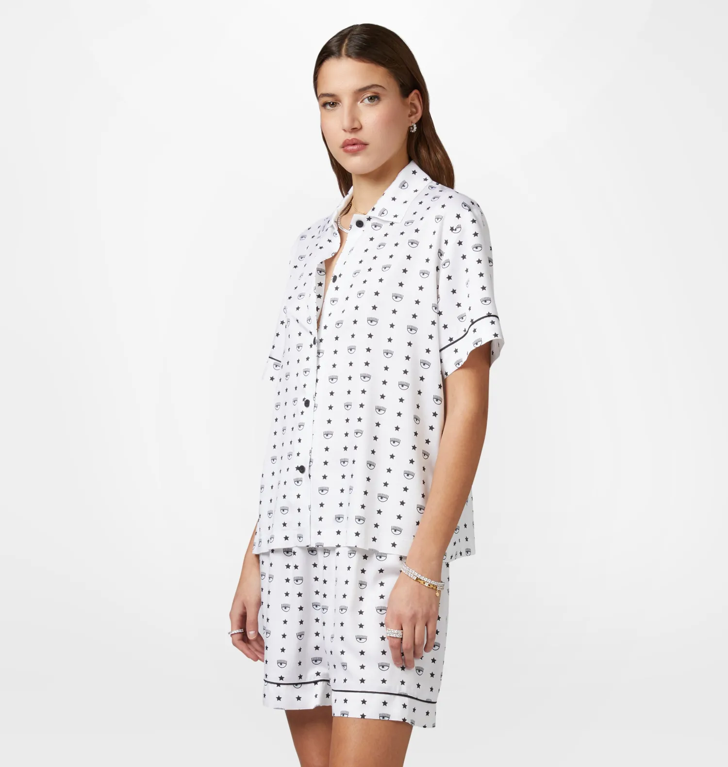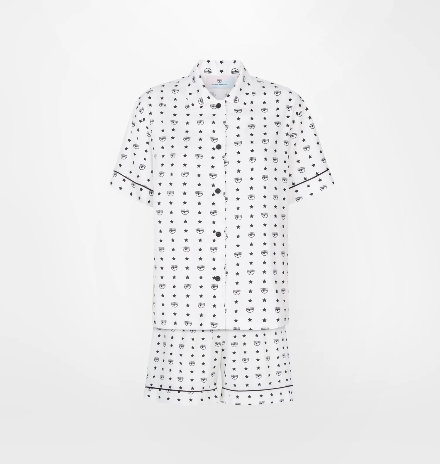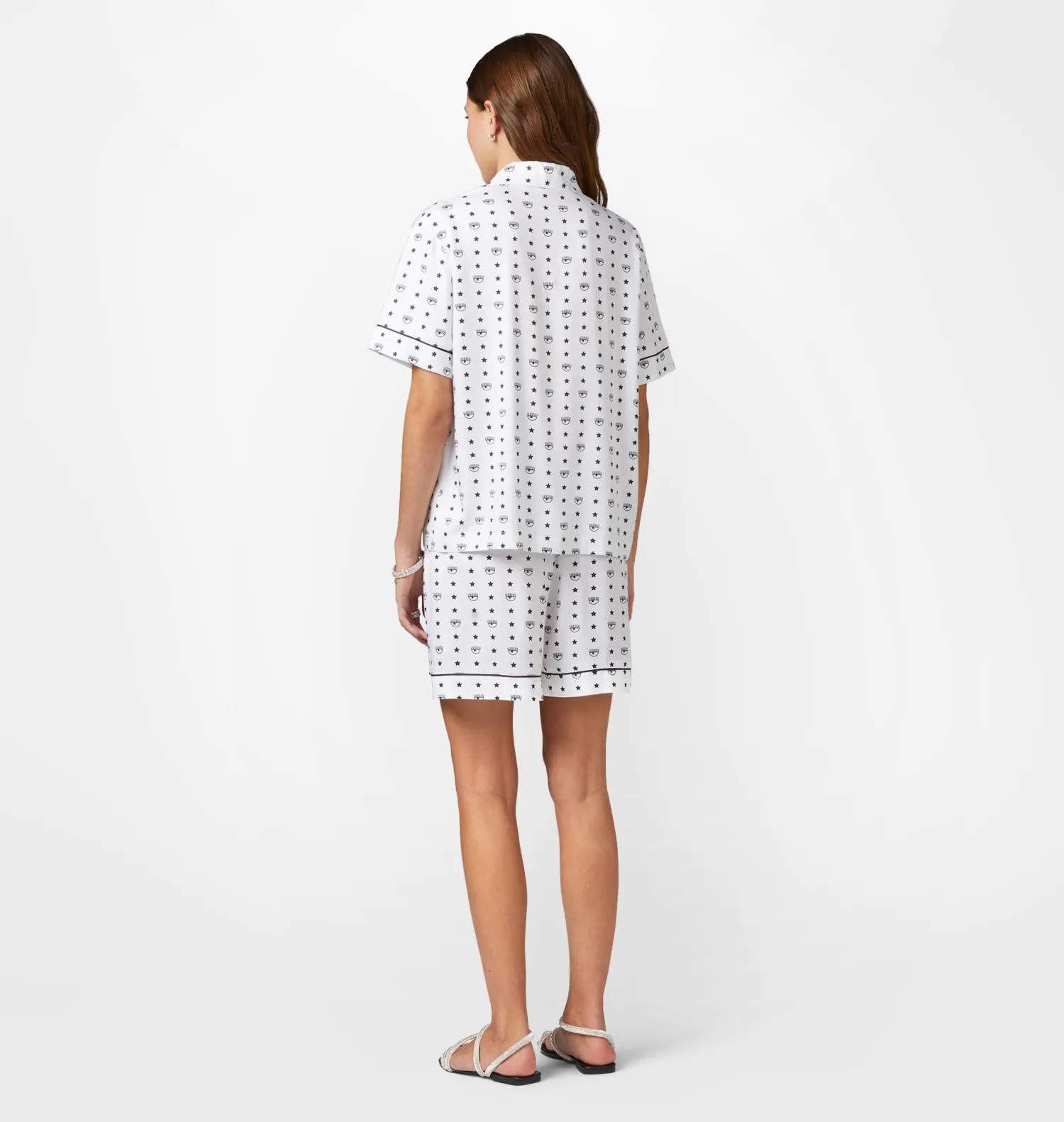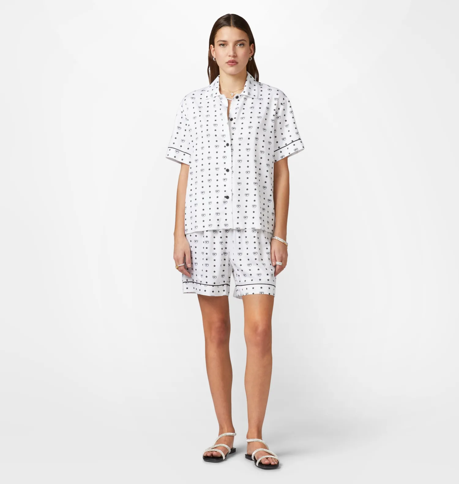 White cotton short pyjamas in Eye Star All-Over print.100% Viscose