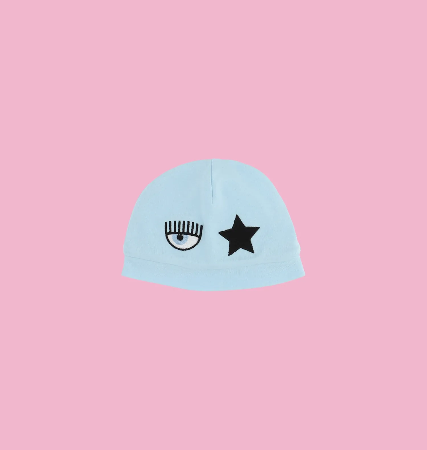 Pastel blue cotton bonnet with Eye Star embroideryTessuto principale: 100% Cotone