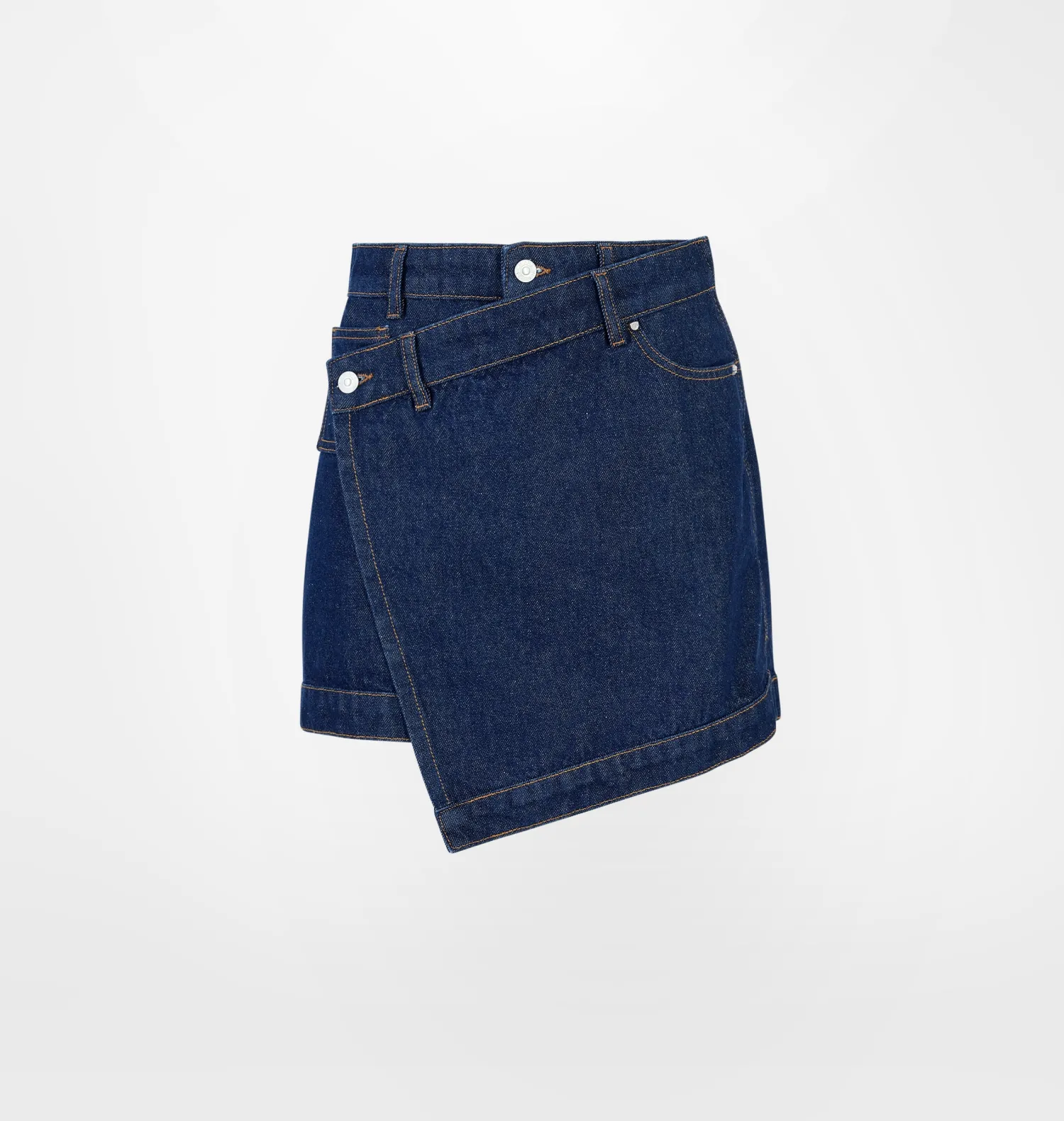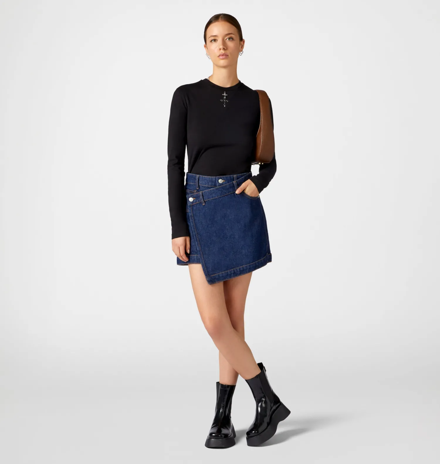 Denim miniskirt with wrap-around fastening and Eye Star 3D logo on the back pockets.