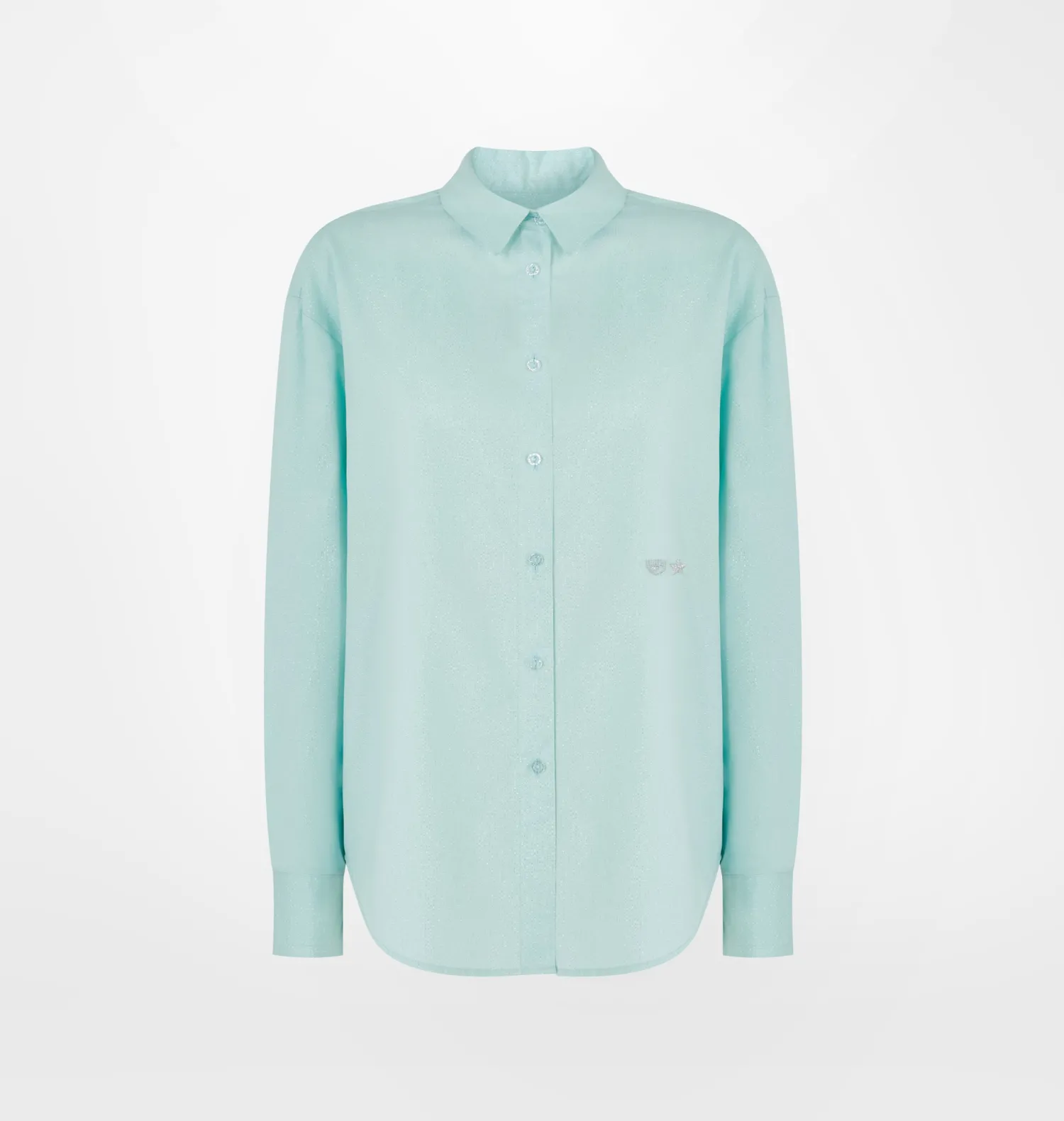 Light blue long-sleeved shirt with lurex stripe and Eye Star embroidery, over fit.Fabric 1: 84% Viscose, 16% Polyamide