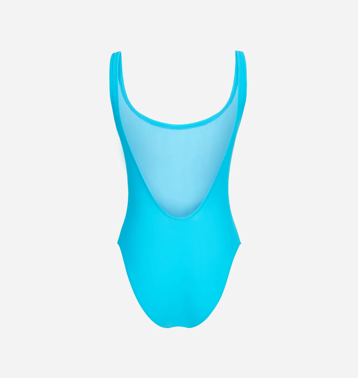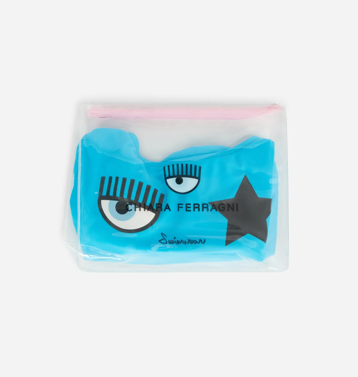 LIGHTBLUE ONE-PIECE SWIMSUIT WITH PLUNGE BACK AND EYESTAR PATTERN ON THE FRONT80%PA20%EA