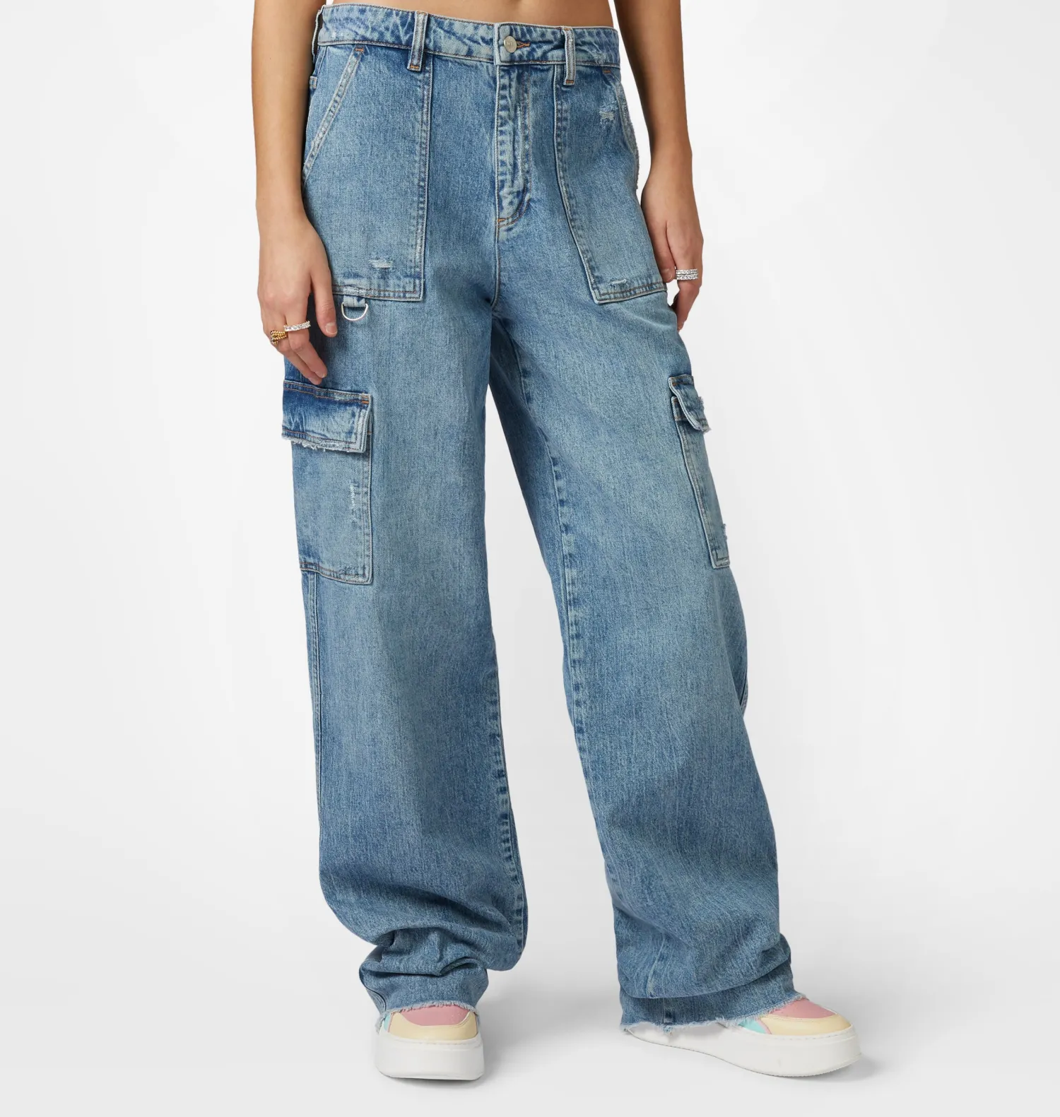 Denim cargo trousers with raw cut and rips, Ferragni Punk print on the back pocket.Fabric 1: 99% Cotton, 1% Elastane