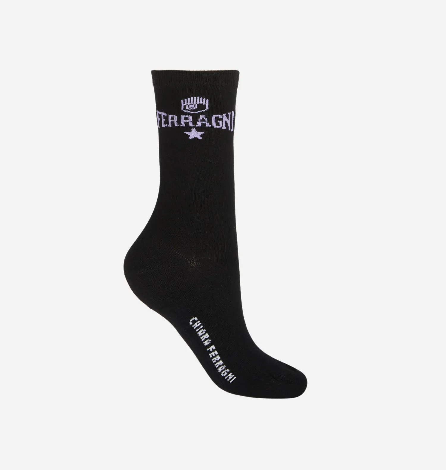 Black cotton socks with jacquard Ferragni Stretch graphic.