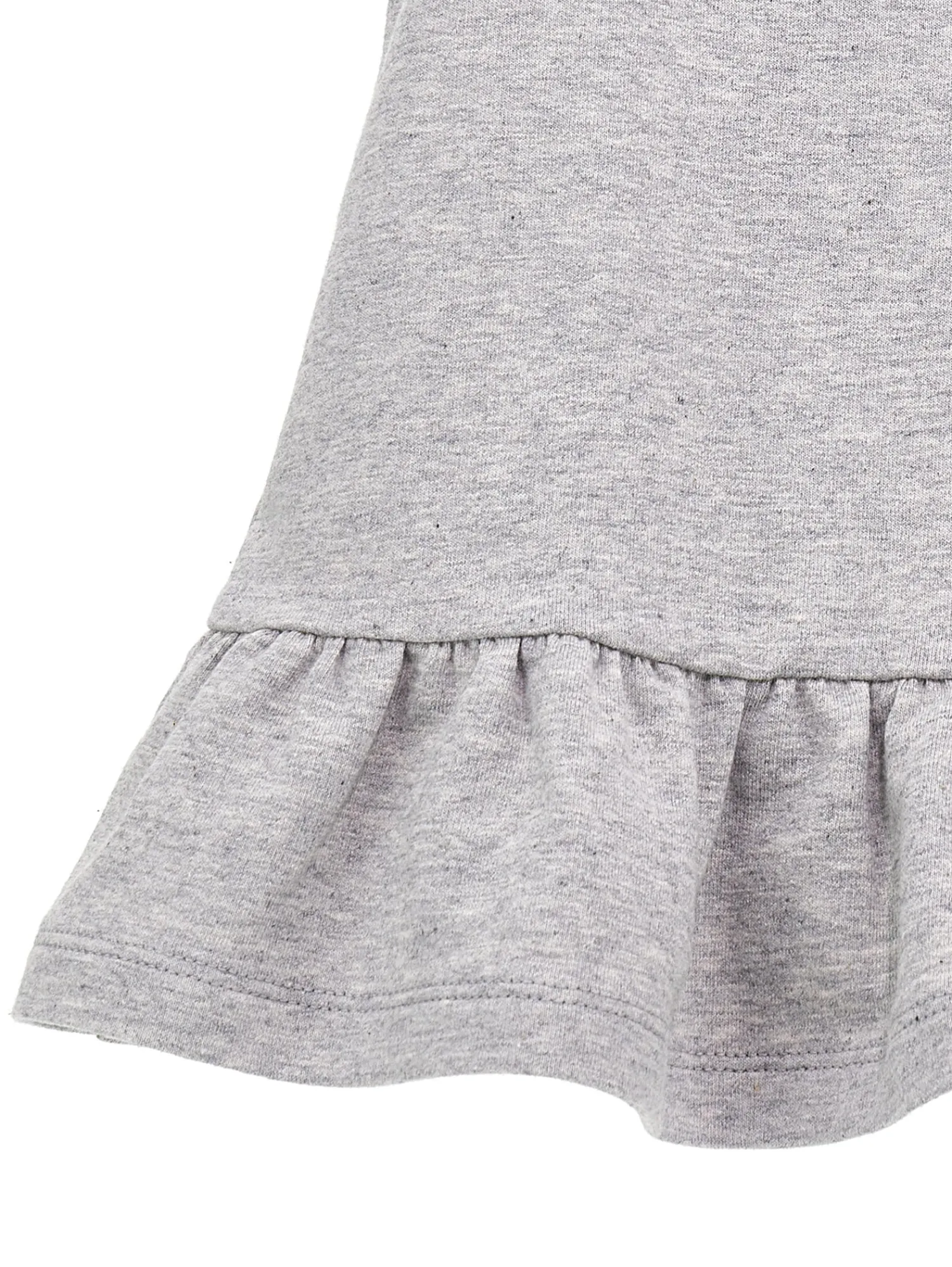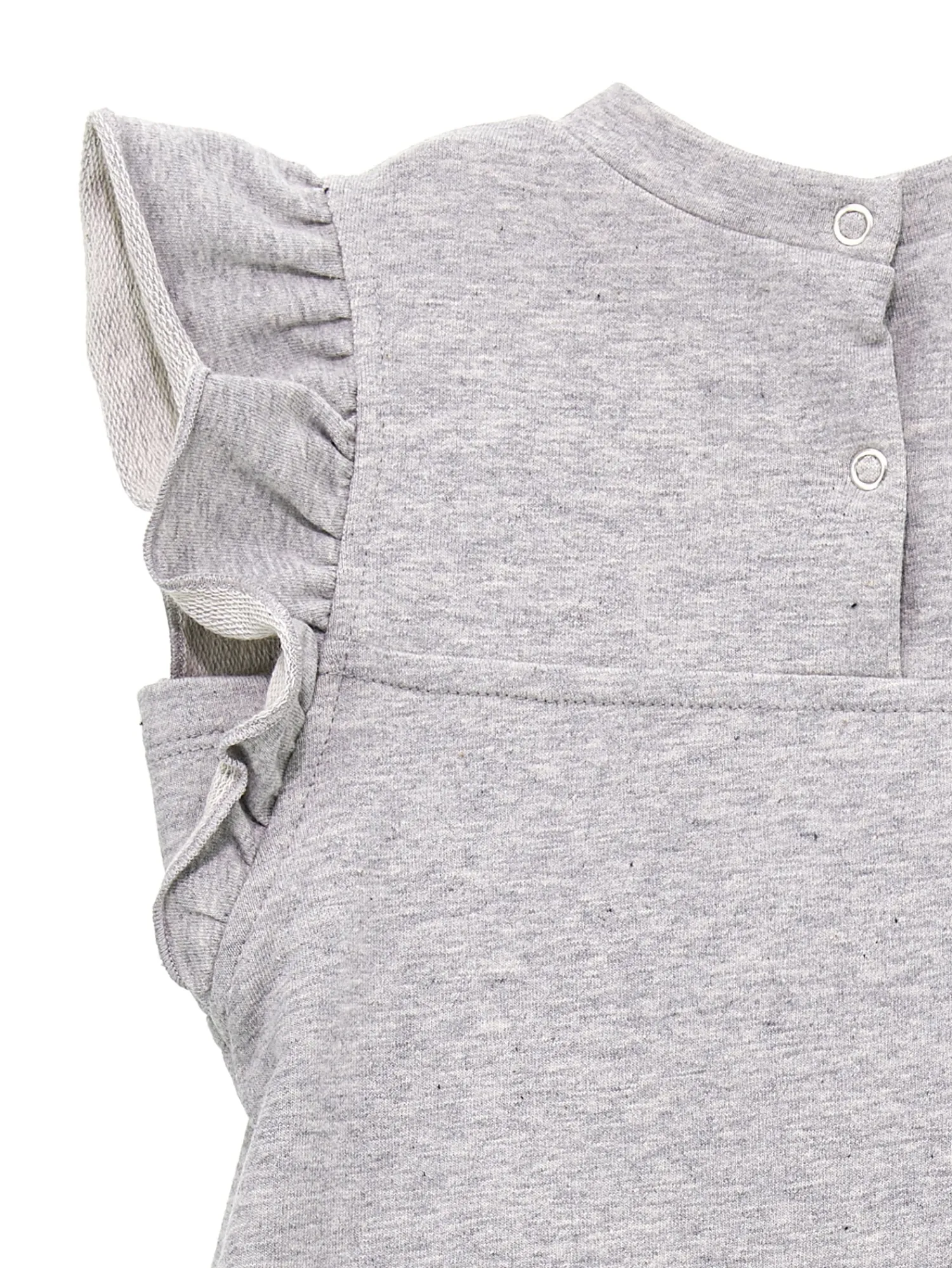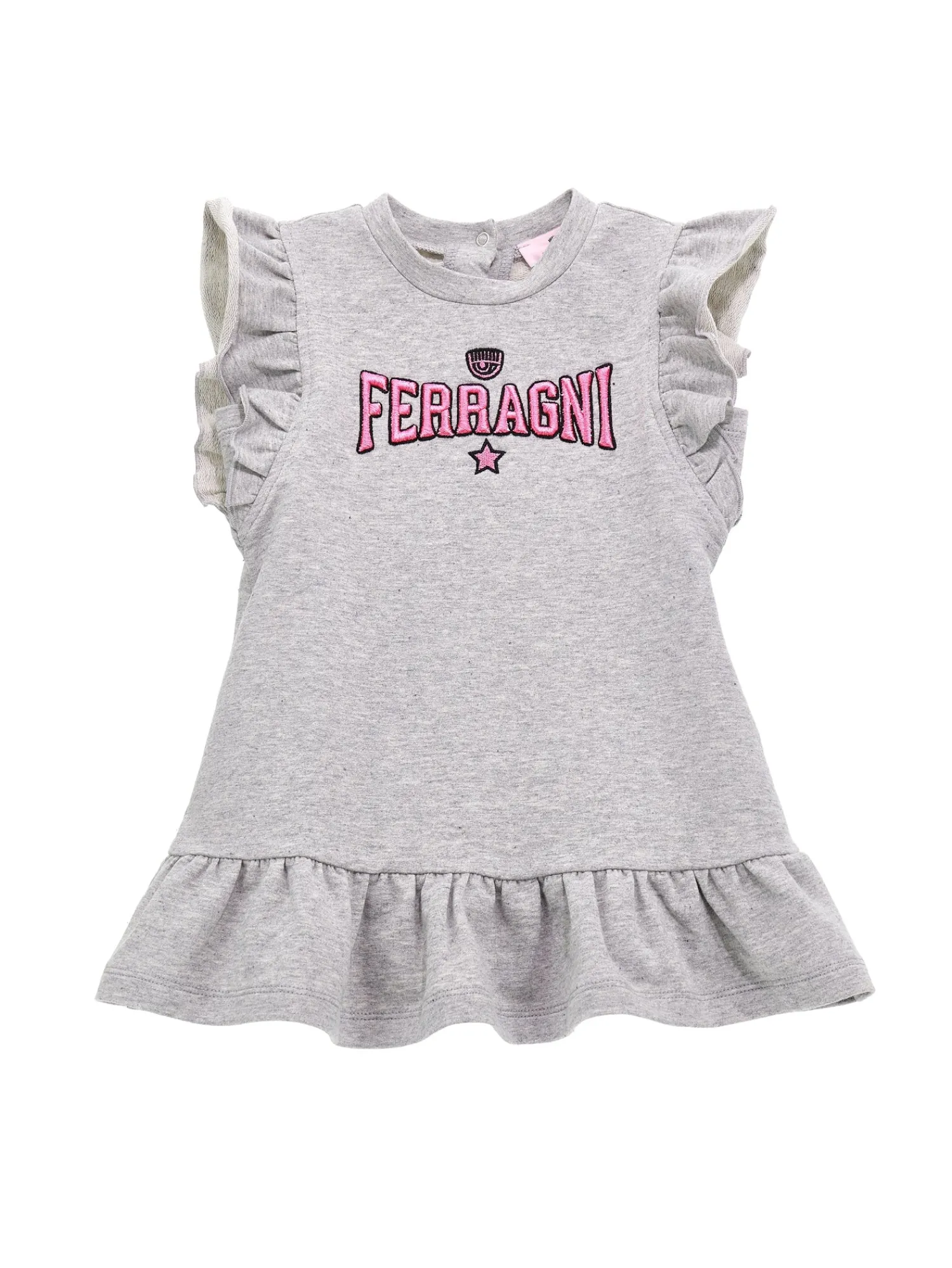 Little grey dress with ruffled sleeves, flounce on the skirt and Ferragni Stretch logo.