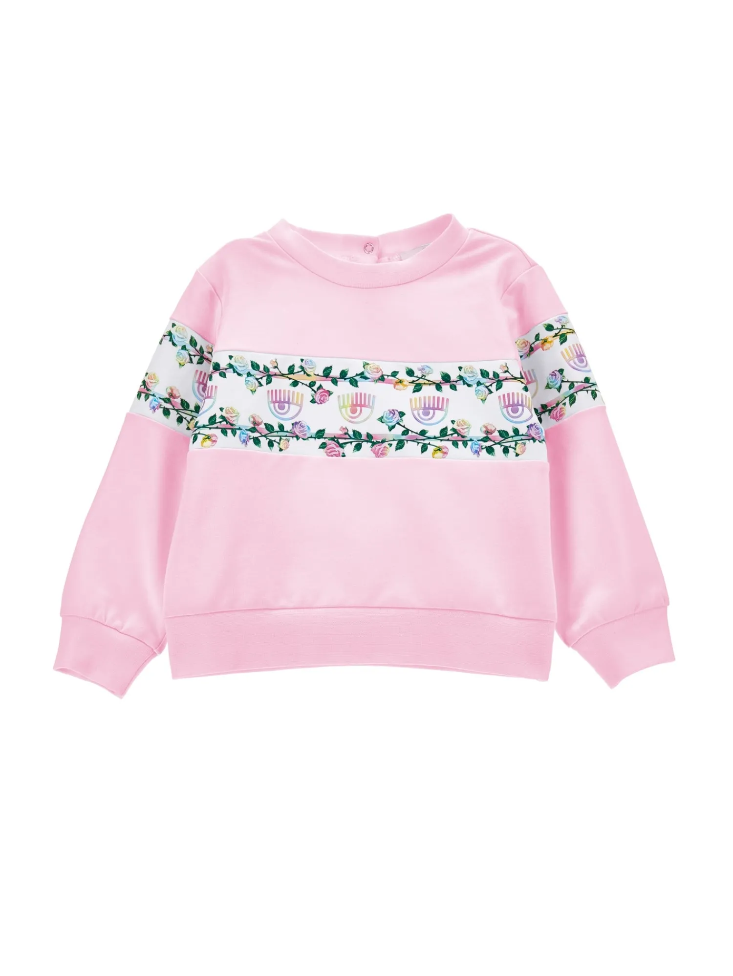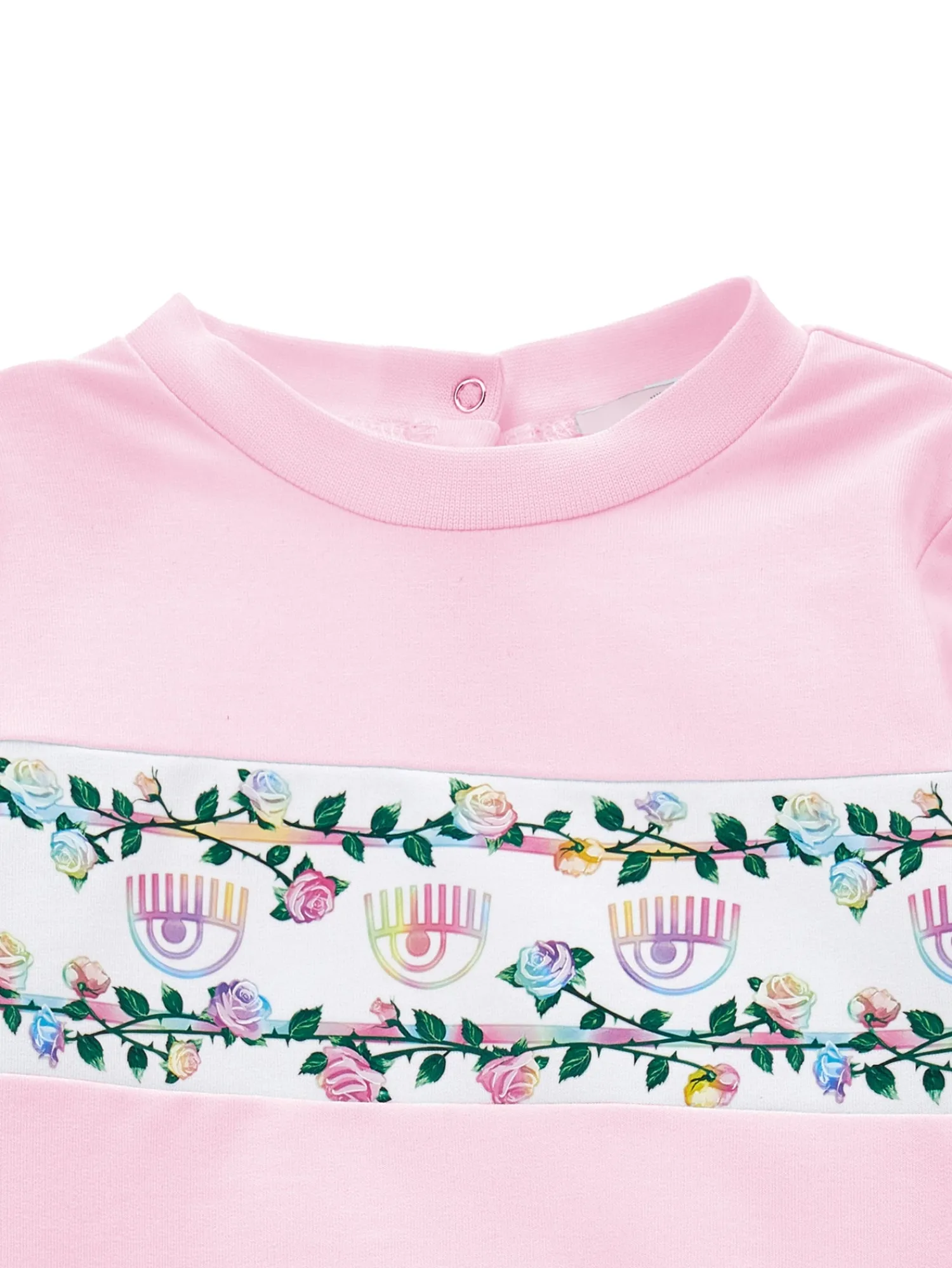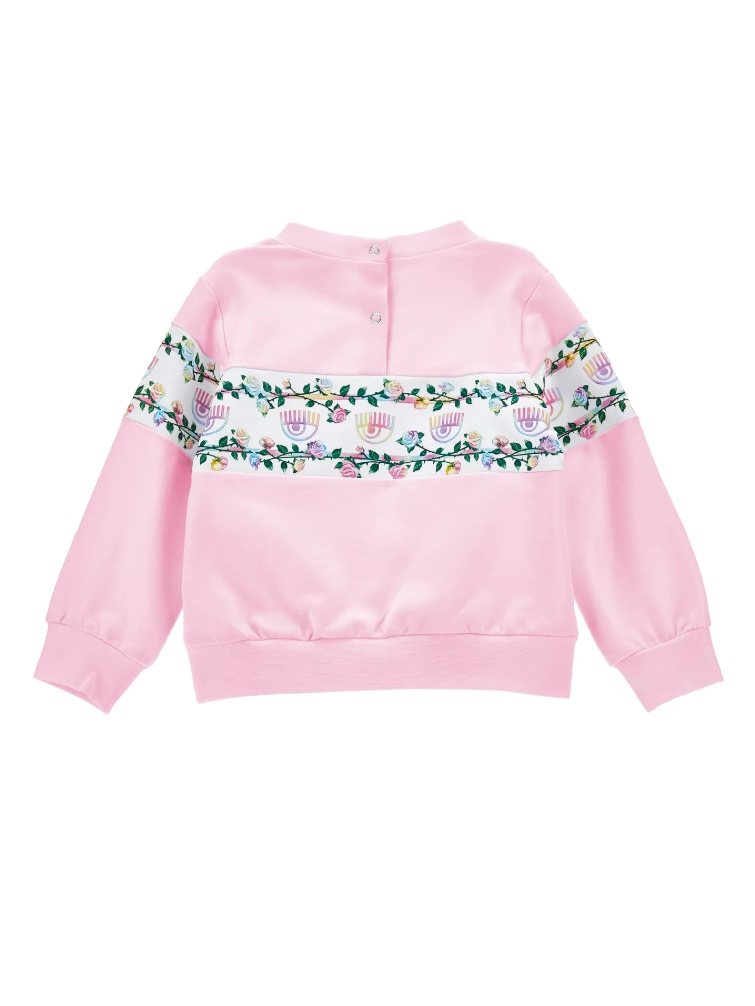 Pink cotton sweatshirt with flower printFabric 1: 95% Cotton, 5% Elastane