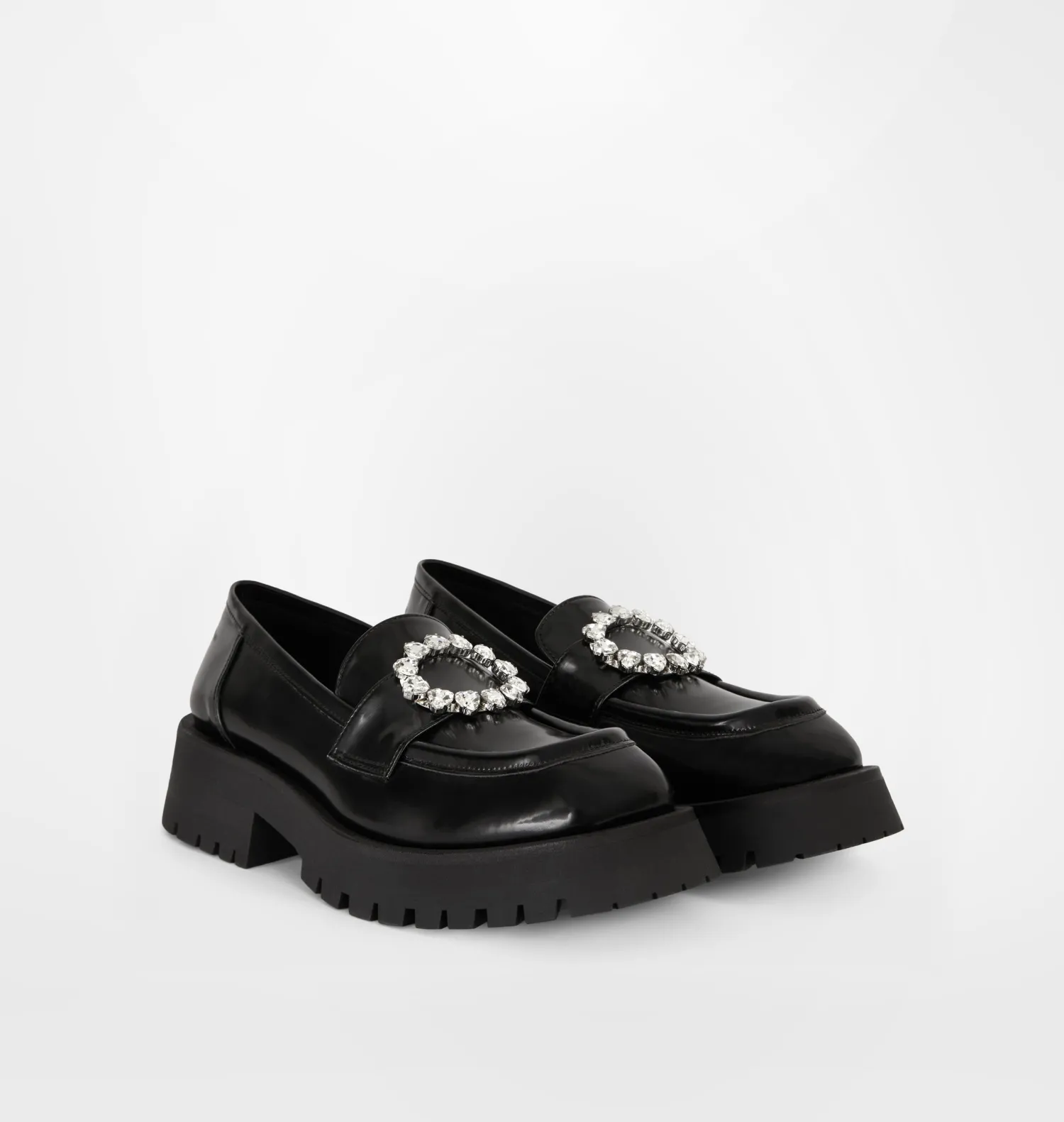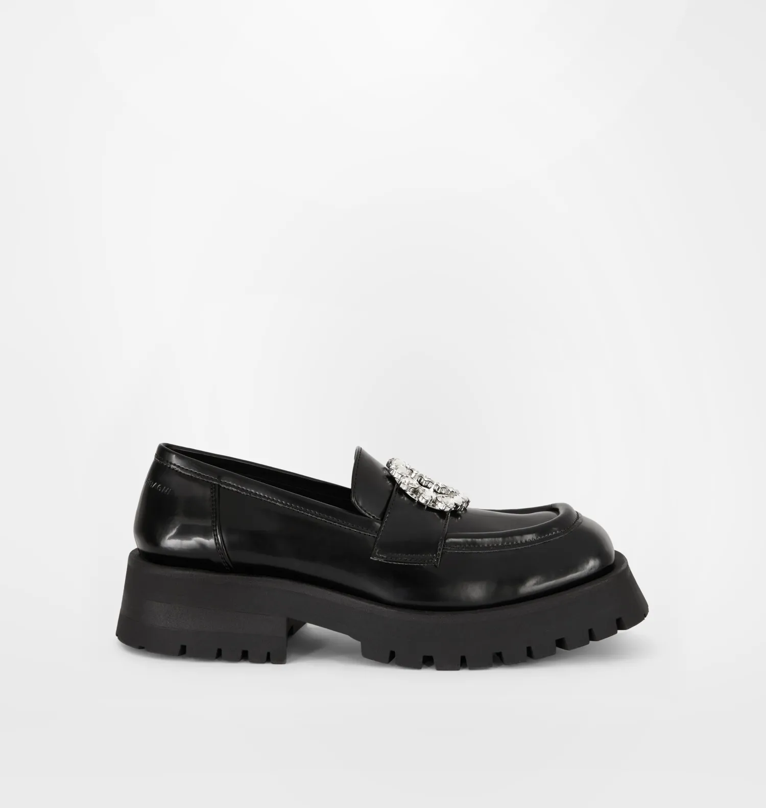 Brushed leather moccasins, rubber sole, rounded toe and Infinity love jewel detailLINING: CALF LEATHER # INSOCK: CALF LE…