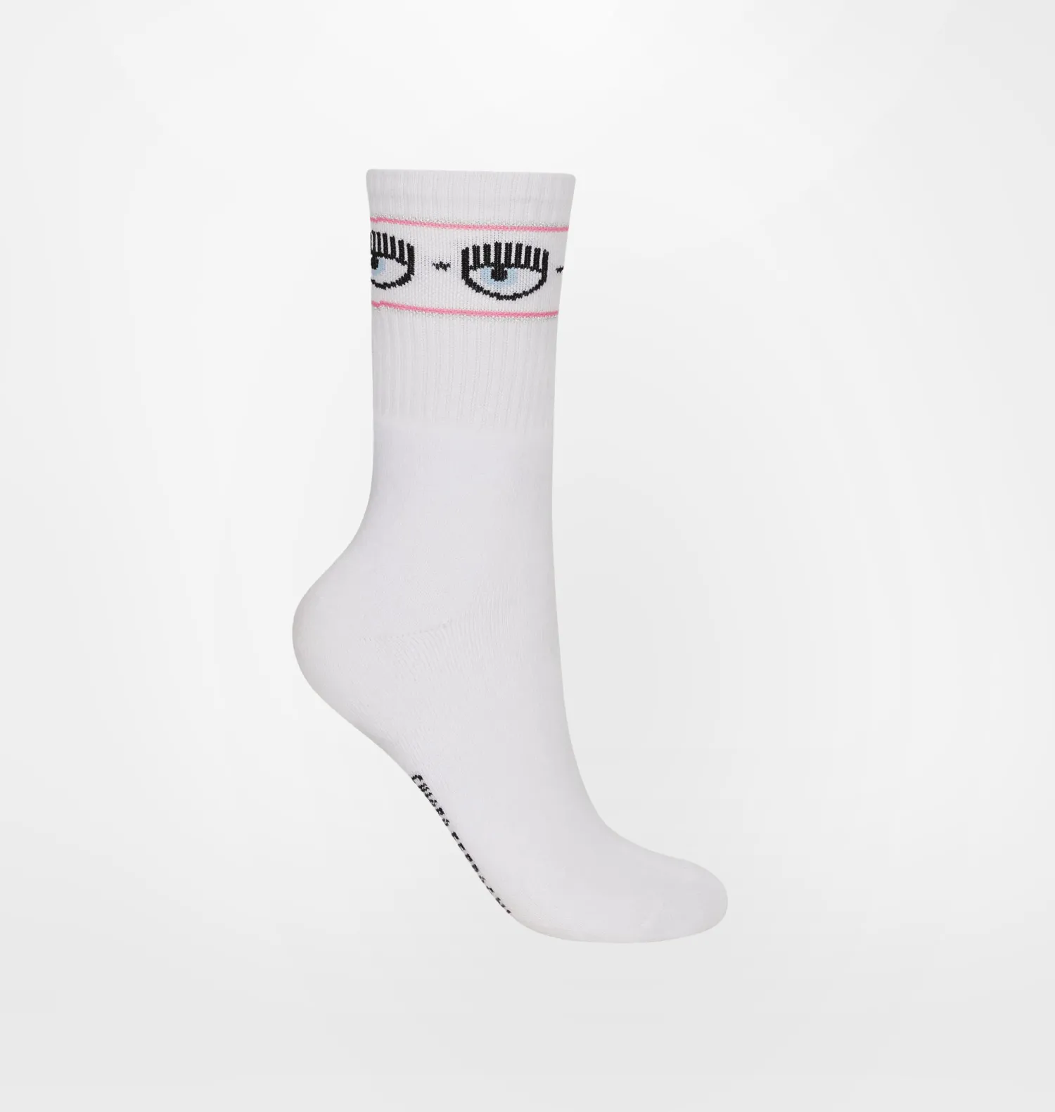 White cotton socks with Maxi Logomania band.H: 19 cmFABRIC 1:80%CO,17%PA,3%EA –