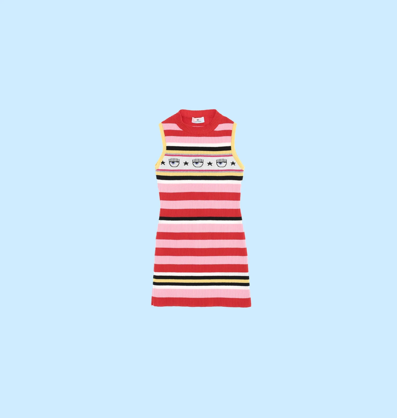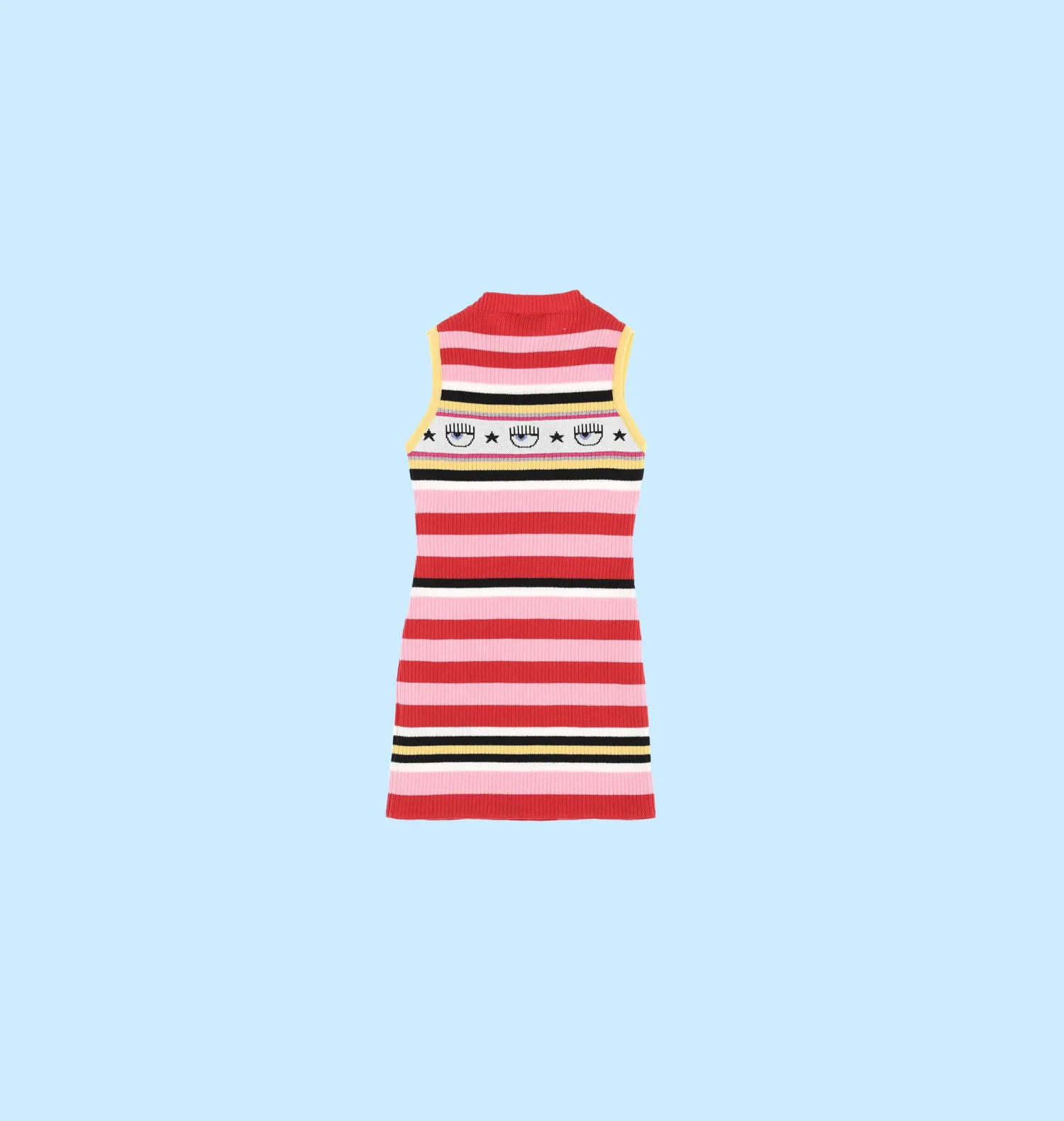 Ribbed midi dress in multicolored striped cotton and Maxi Logomania bandTessuto principale: 100% Cotone