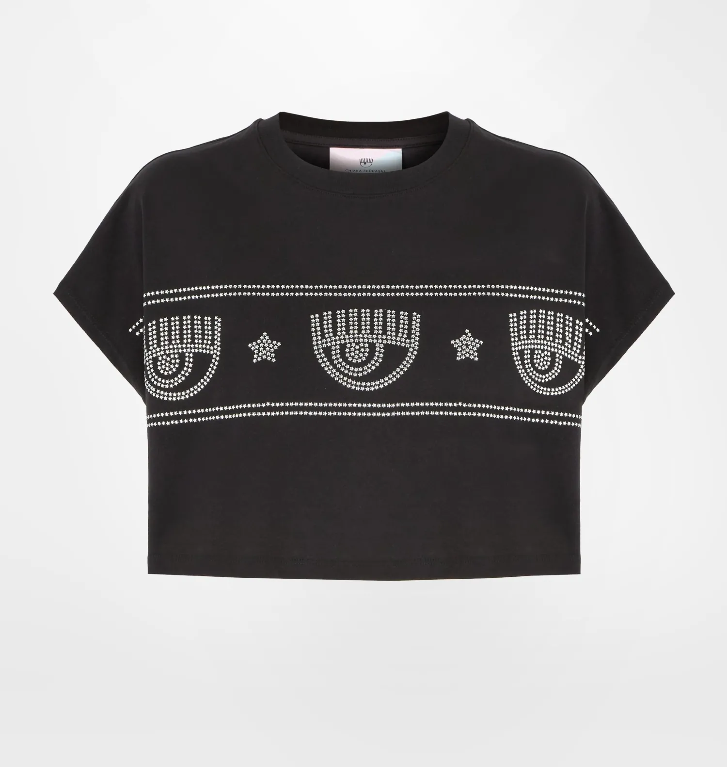 Black slim fit crop T-shirt with studded Maxi Logomania band.Fabric 1: 100%Cotton