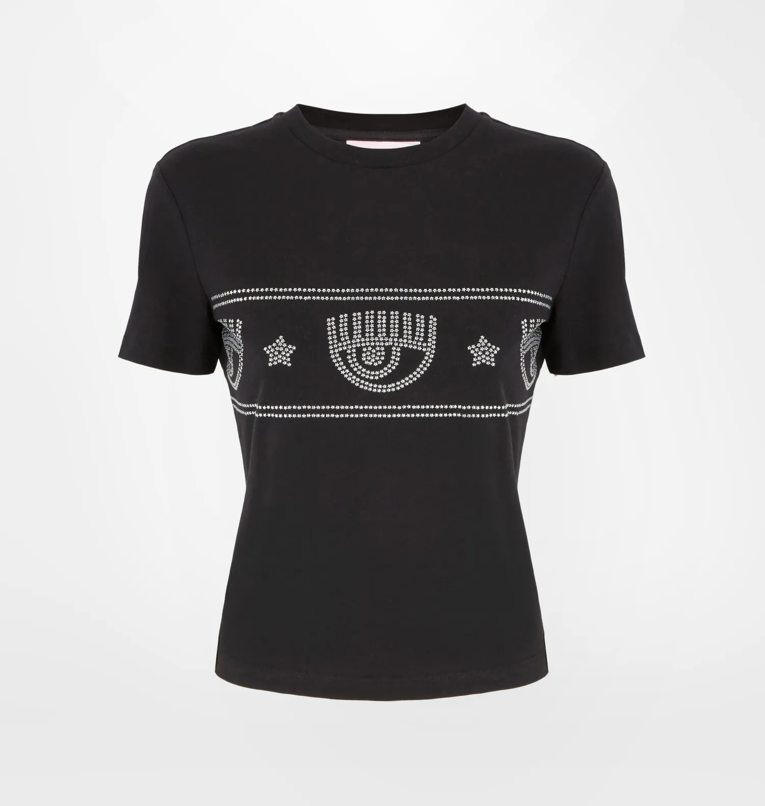 Black slim fit T-shirt with studded Maxi Logomania band.Fabric 1: 100%Cotton