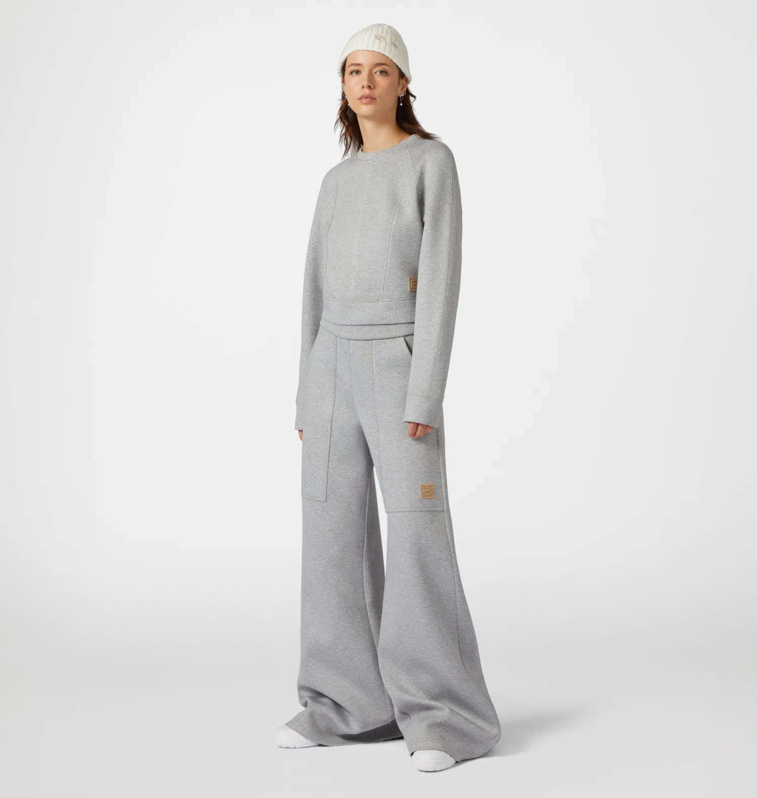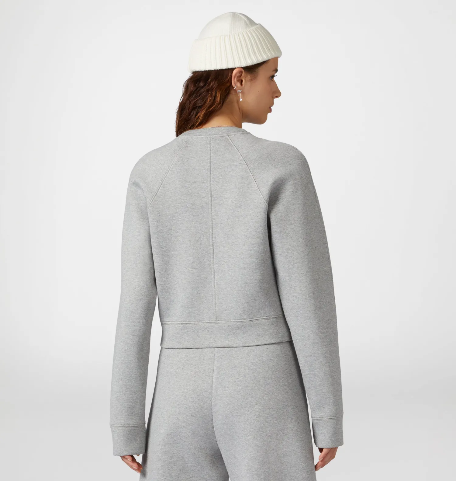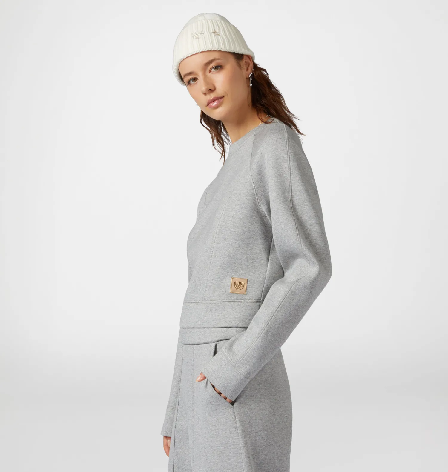 Grey viscose scuba crew-neck sweatshirt with logo patch. Regular fit.